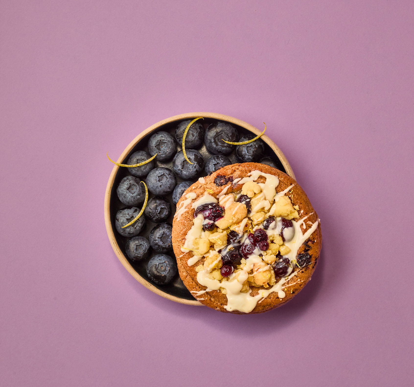 Organic Einkorn Wheat, Blueberries, Lemon Zest, Organic Grass-Fed French PDO Butter, Organic Eggs, Vanilla Cashew Collagen Crumble