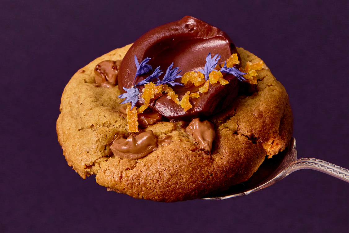 Maison Methodologie signature protein blend (vital wheat gluten, grass-fed whey protein isolate), allulose, grass-fed butter, Valrhona Satilia 38% milk chocolate (cocoa butter, cacaoo, cane sugar, sunflower lecithin, skimmed milk), organic einkorn flour, Valrhona caraibe 66% dark chocolate (vanilla bean, cocoa butter, cacao, cane sugar, sunflower lecithin), cream, organic agave inulin fiber, organic eggs, london fog concentrate (organic madagascar bourbon vanilla extract, black tea leaf, xanthan gum, citric acid, cane sugar, natural flavors, bergamot juice), earl grey tea (black tea leaf), orange confit, candied orange peel (orange peel, citric acid, sugar, ascorbic acid), vanilla bean paste (cane sugar, vanilla bean, vanilla extract, gum tragacanth, alcohol), kosher salt, baking soda, cornflower blossom