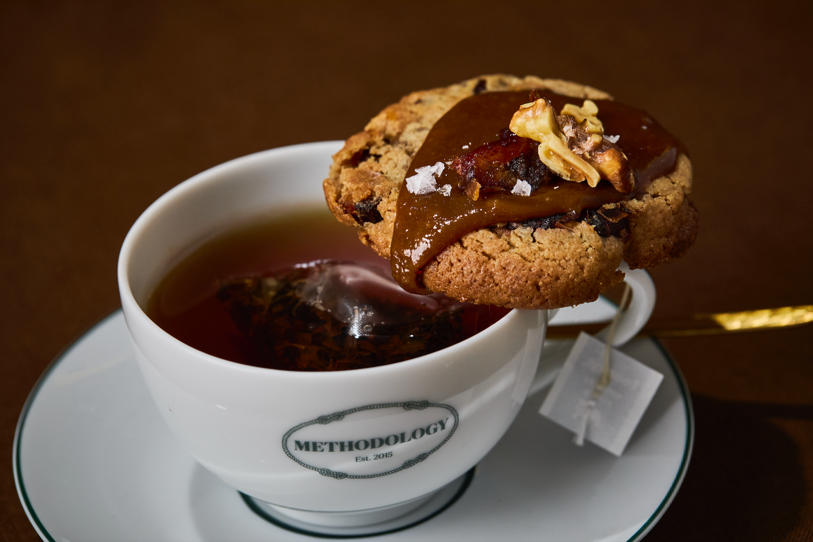 Maison Methodologie signature protein blend (vital wheat gluten, grass-fed whey isolate), allulose, dark brown sugar, organic grass-fed French PDO butter toffee (cane sugar, organic butter, Nielsen-Massey’s pure vanilla bean paste, kosher salt), Valrhona Satilia 62% dark chocolate (cocoa butter, cacao, cane sugar, vanilla bean, sunflower lecithin), organic einkorn flour, organic eggs, organic agave inulin fiber, Valrhona Ivoire 35% white chocolate feves (cocoa butter, whole milk, sugar, unsalted butter, vanilla extract, grass-fed whey protein isolate powder, sunflower lecithin), Valrhona Blond Dulcey 35% cacao feves (cocoa butter, whole milk, sugar, unsalted butter, vanilla extract, grass-fed whey protein isolate powder, sunflower lecithin), organic cardamom seeds, Nielsen-Massey vanilla bean paste (cane sugar, vanilla bean, vanilla extract, gum tragacanth, alcohol), kosher salt, organic coffee, baking soda