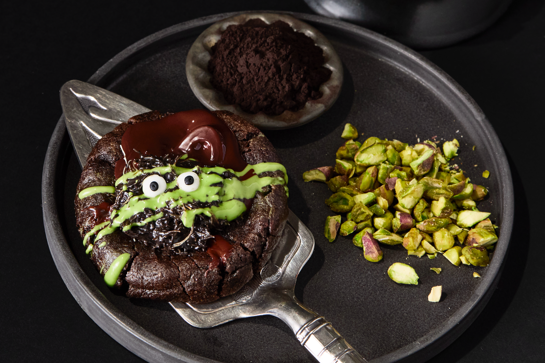 Maison Methodologie signature protein blend (vital wheat gluten, grass-fed whey protein isolate), non-GMO grass-fed unsalted butter, allulose, dark brown sugar, Guittard dark chocolate (vanilla bean, cacao butter, cacao, sugar, sunflower lecithin), pistachio butter (pistachio), black cocoa powder, shredded phyllo dough, organic agave inulin fiber, organic eggs, Guittard white chocolate (vanilla bean, cocoa butter, cacao, sugar, sunflower lecithin), organic einkorn flour, candy eyeball sprinkles (acacia gum, dextrose, cornstarch, dextrin, yellow #5, red #40, red #40 lake, blue #1, carnauba wax, magnesium stearate, confectioner's glaze, titanium dioxide), Nielsen-Massey vanilla bean paste (cane sugar, vanilla bean, vanilla extract, gum tragacanth, alcohol), kosher salt, baking soda, organic coffee, almond oil, organic pistachio oil, yellow #5, blue #1