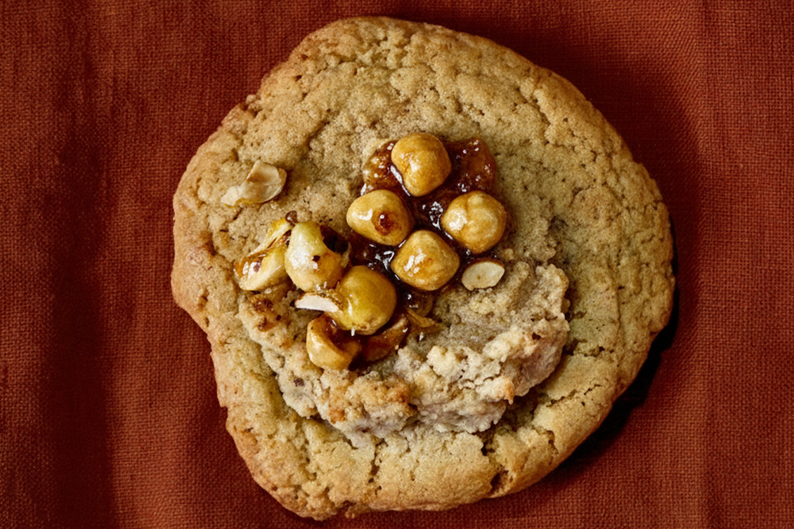 Maison Methodologie signature protein blend (vital wheat gluten, grass-fed whey isolate), allulose, dark brown sugar, organic grass-fed French PDO butter toffee (cane sugar, organic butter, Nielsen-Massey's pure vanilla bean paste, kosher salt), Valrhona Satilia 62% dark chocolate (cocoa butter, cacao, cane sugar, vanilla bean, sunflower lecithin), organic einkorn flour, organic eggs, organic agave inulin fiber, Valrhona Ivoire 35% white chocolate feves (cocoa butter, whole milk, sugar, unsalted butter, vanilla extract, grass-fed whey protein isolate powder, sunflower lecithin), Valrhona Blond Dulcey 35% cacao feves (cocoa butter, whole milk, sugar, unsalted butter, vanilla extract, grass-fed whey protein isolate powder, sunflower lecithin), organic cardamom seeds, Nielsen-Massey vanilla bean paste (cane sugar, vanilla bean, vanilla extract, gum tragacanth, alcohol), kosher salt, organic coffee, baking soda